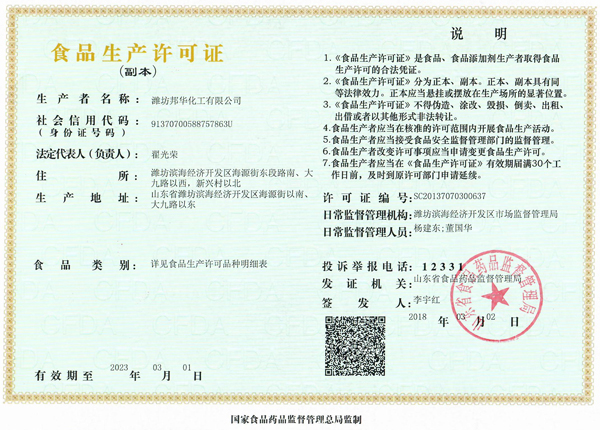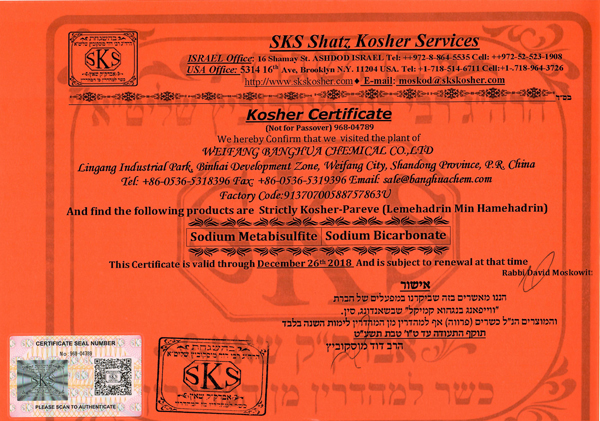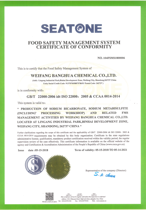 FOOD GRADE CERTIFICATION -